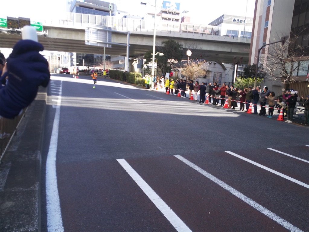 折り返した後、浅草へ向かう途中、日本橋茅場町付近で先頭ランナーとすれ違いました。